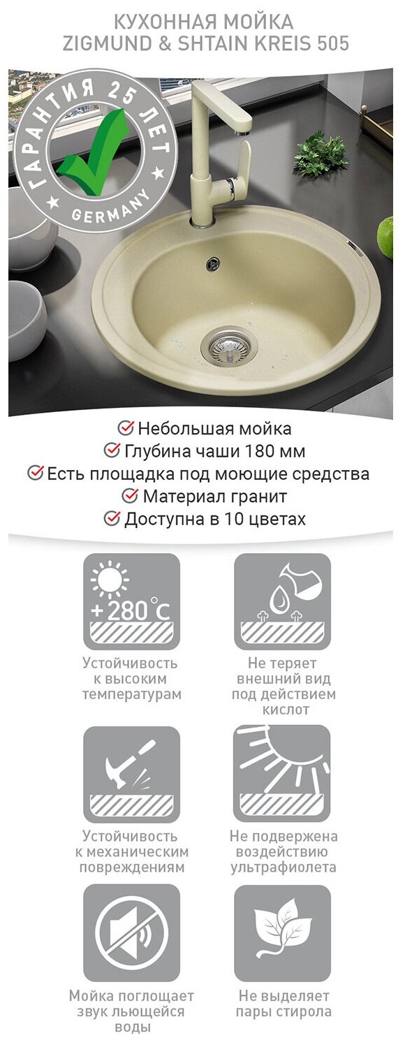Ниже Вы можете прочитать отзывы на Мойка из гранита Zigmund Shtain KREIS 505 Индийская ваниль, ознакомится с подробными характеристиками, посмотреть интересные обзоры и фотографии на Мойка из гранита Zigmund Shtain KREIS 505 Индийская ваниль.
