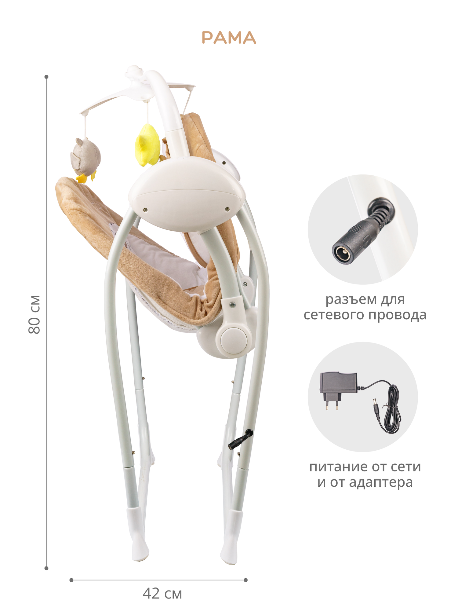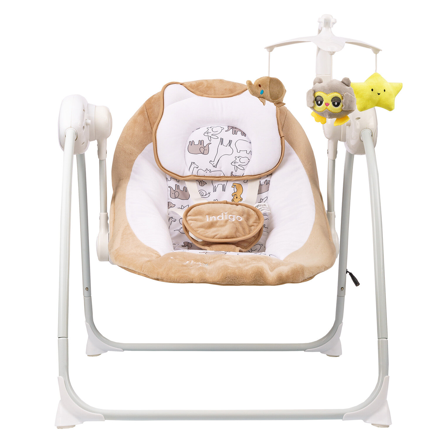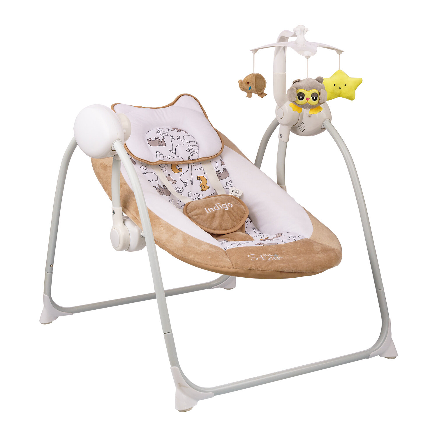 Электронные качели Indigo STAR (0-9 кг), с адаптером, п/у, 12 мелодий, 5 скоростей, москитка, бежевый