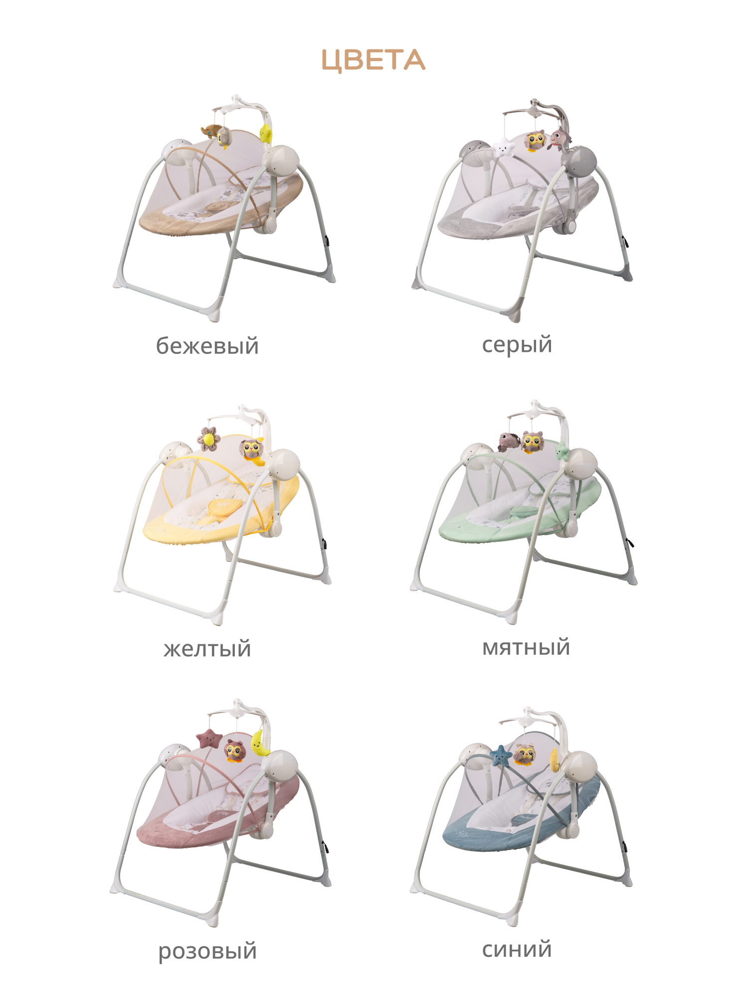 Электронные качели STAR (0-9 кг), с адаптером, пу, 12 мел., 5 скоростей, москитка (упак.1 шт.)(Indi