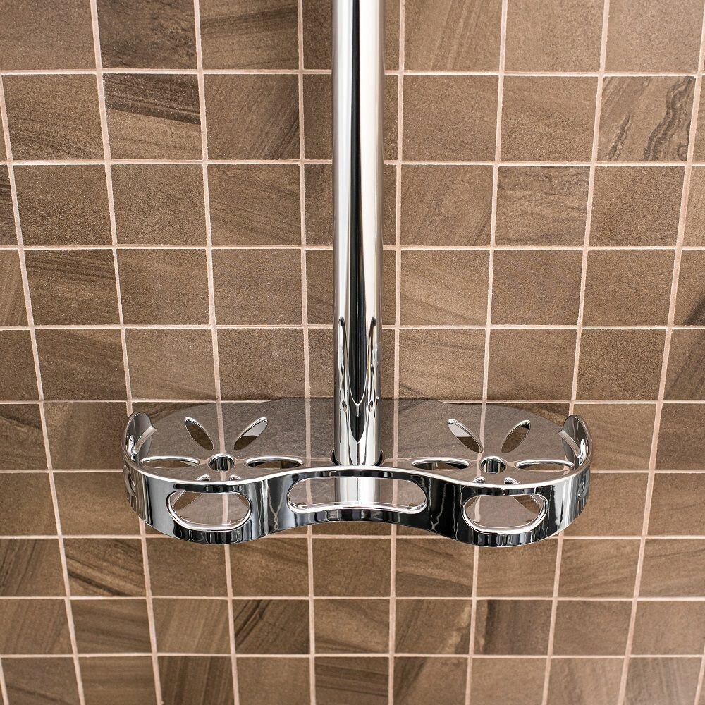 Стойка для душа с лейкой Цвет покрытия корпуса: хром В комплекте: мыльница, полочка, держатель для душа крепления
