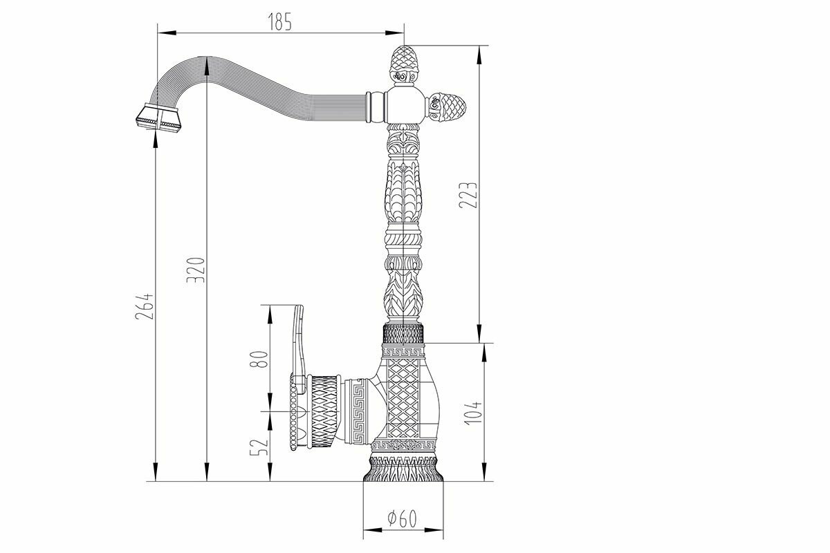 | Отзыв: | Очень красивый смеситель который сразу бросается в глаза, полностью украшен различными узорами и линиями (на носу), тяжелый. Работает исправно. |
