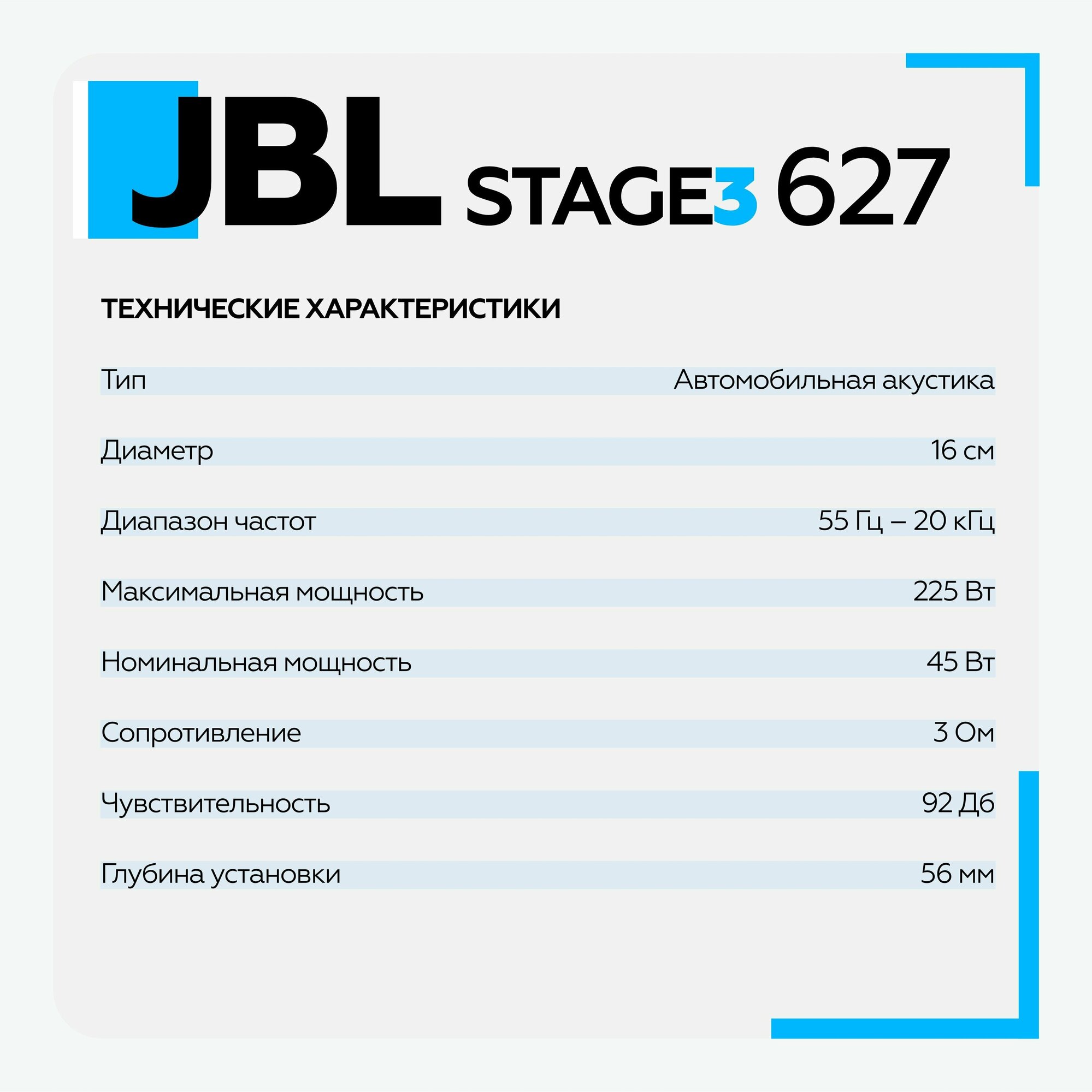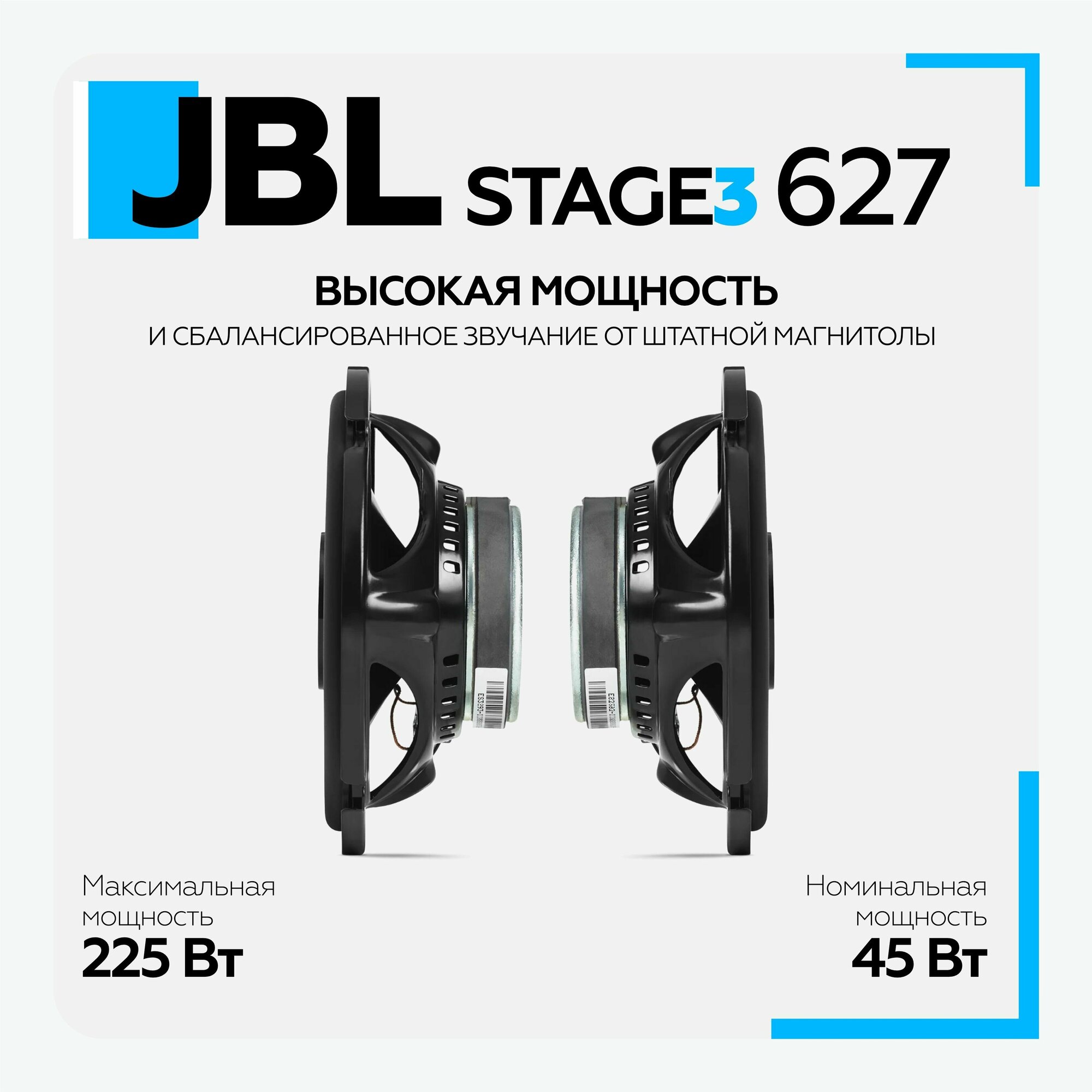 Колонки автомобильные JBL Stage3 627, 16 см (6.5 дюйм.), комплект 2 шт.