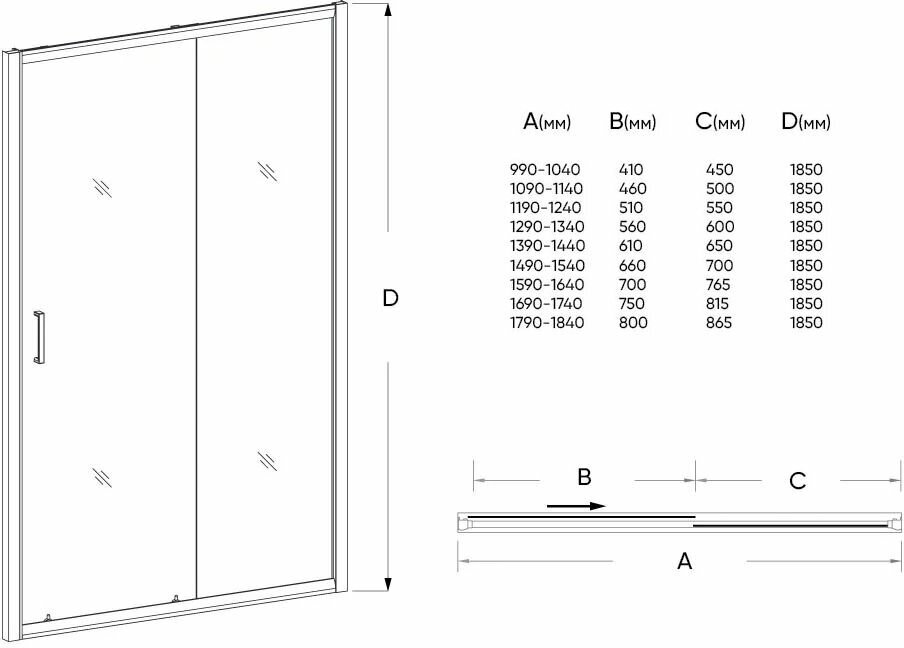 Купить Душевая дверь Veconi VN46-100-01-C5 1000х1850 мм профиль хром, стекло прозрачное