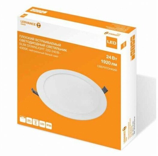 Светильник LED Downlight Slim Round тонкий ДВО 24Вт 4000К 1920Лм IP44 ECO Class бел. Ledvance Osram