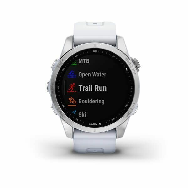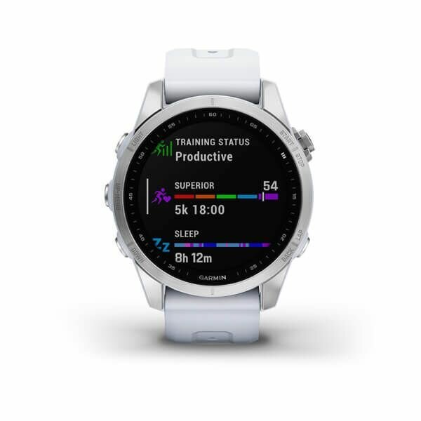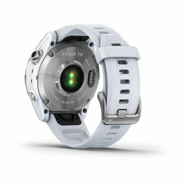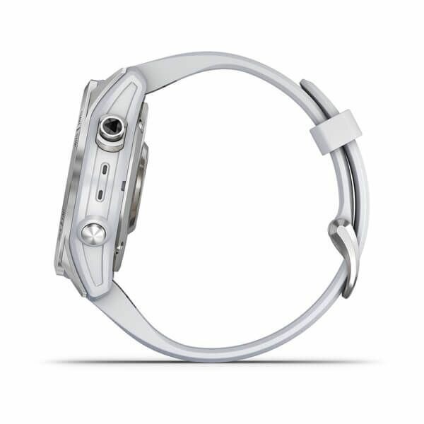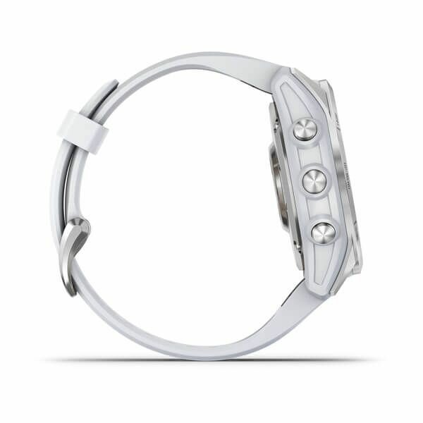 Умные часы Garmin Fenix 7s, серебристый с белым силиконовым ремешком