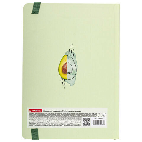 Блокнот с резинкой в клетку 96 л., А5 (145х203 мм), твердая обложка с фольгой, BRAUBERG, "Avocado", 113733 (цена за 1 ед.товара)
