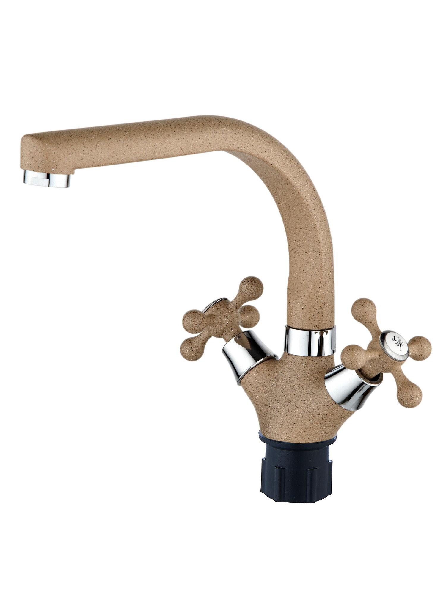 Купить Смеситель на кухню Эверест B69-658 с высоким изливом, керамические кран-буксы, кремовый, крепление гайка