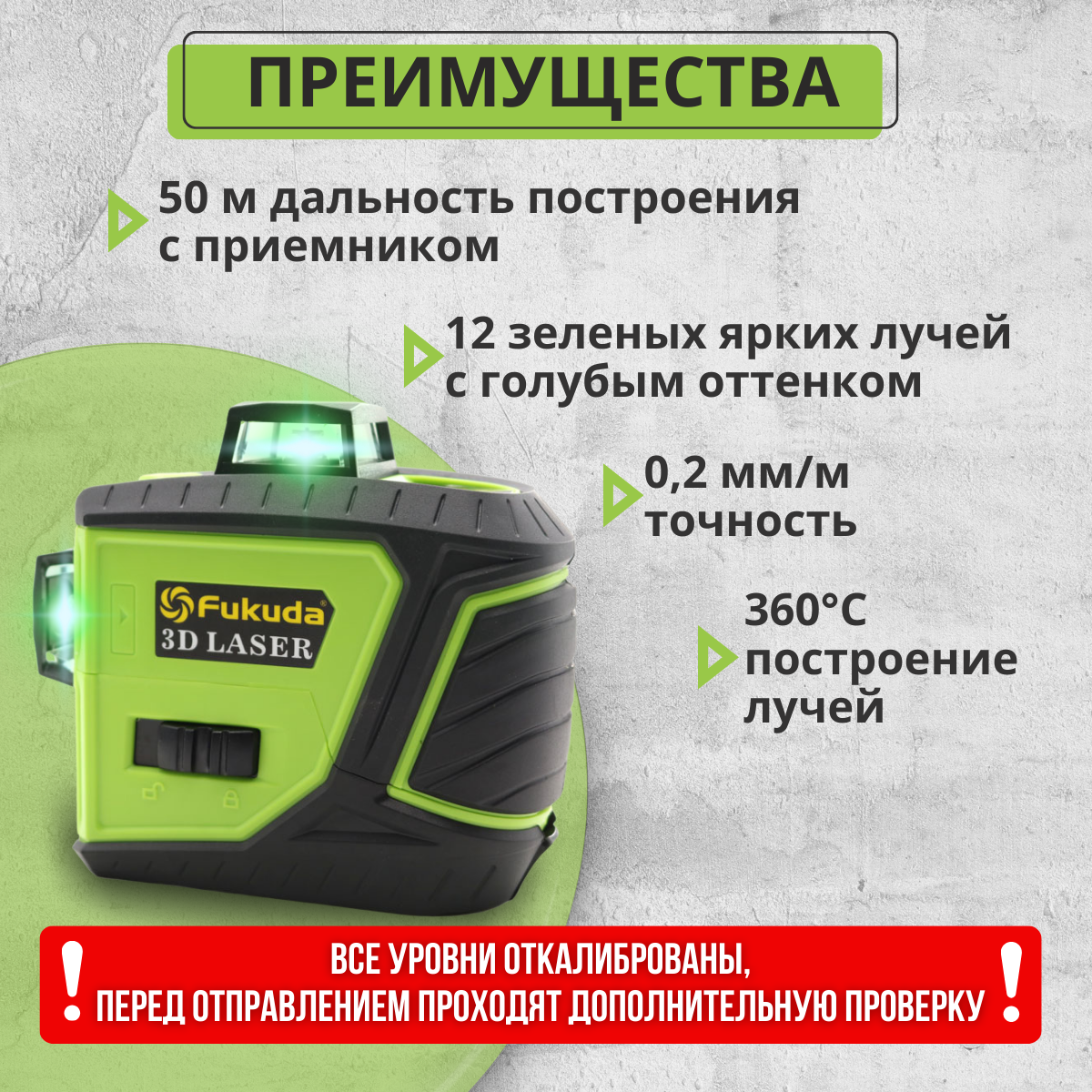Лазерный уровень Fukuda 3D MW-93T-2-3GX 12 линий в кейсе. интересное: