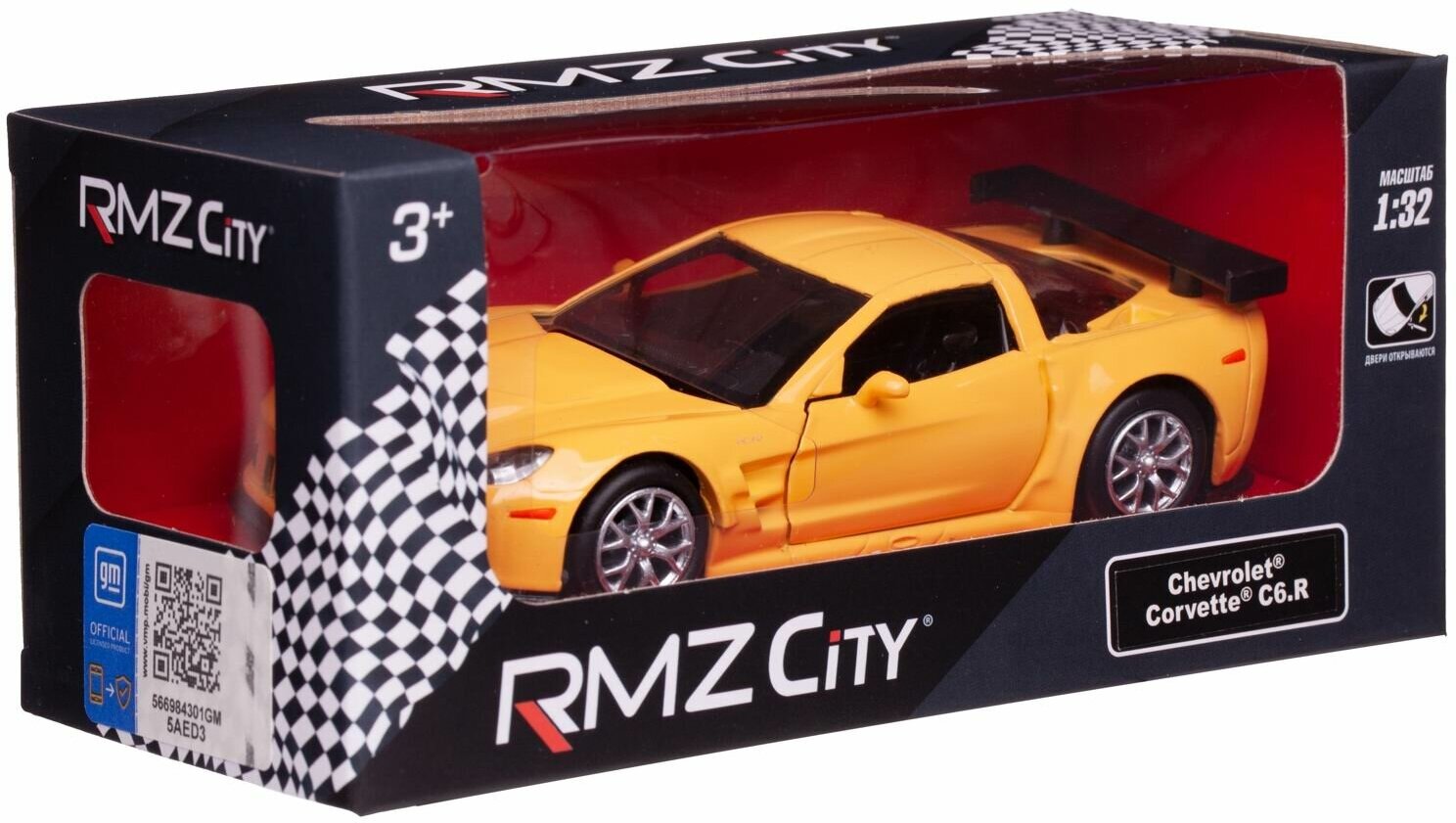 Купить Машина металлическая RMZ City серия 1:32 Chevrolet Corvette C6-R, желтый цвет, двери открываются 554003-YL
