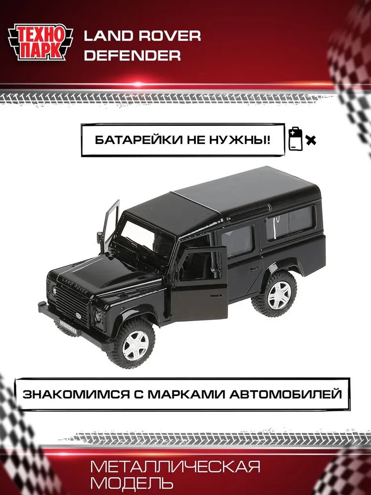 Машина металлическая инерционная "Land Rover Defender" 12 см, открываются двери, цвет черный DEFENDER-BK /Технопарк/