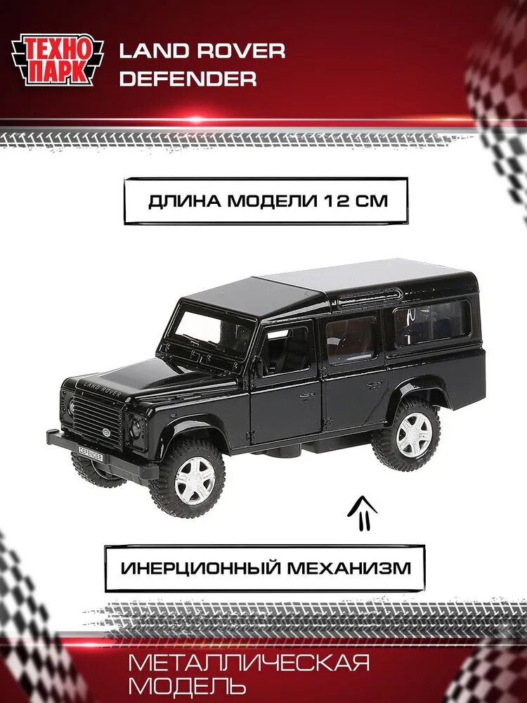 Машина инерционная Технопарк металлическая, Land Rover defender 12 см, открываются двери, черный (DEFENDER-BK)