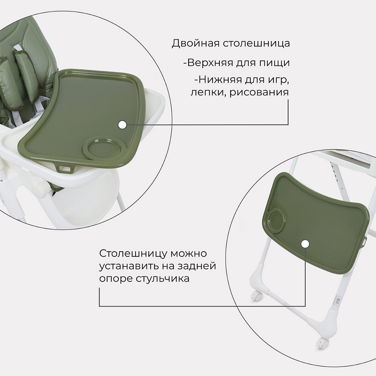 Стульчик для кормления детский, с двойной столешницей, цвет бежевый