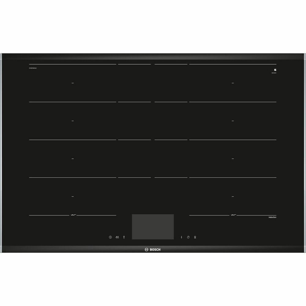 Индукционная варочная панель BOSCH PXY875KV1E, с рамкой, цвет панели черный, цвет рамки серебристый