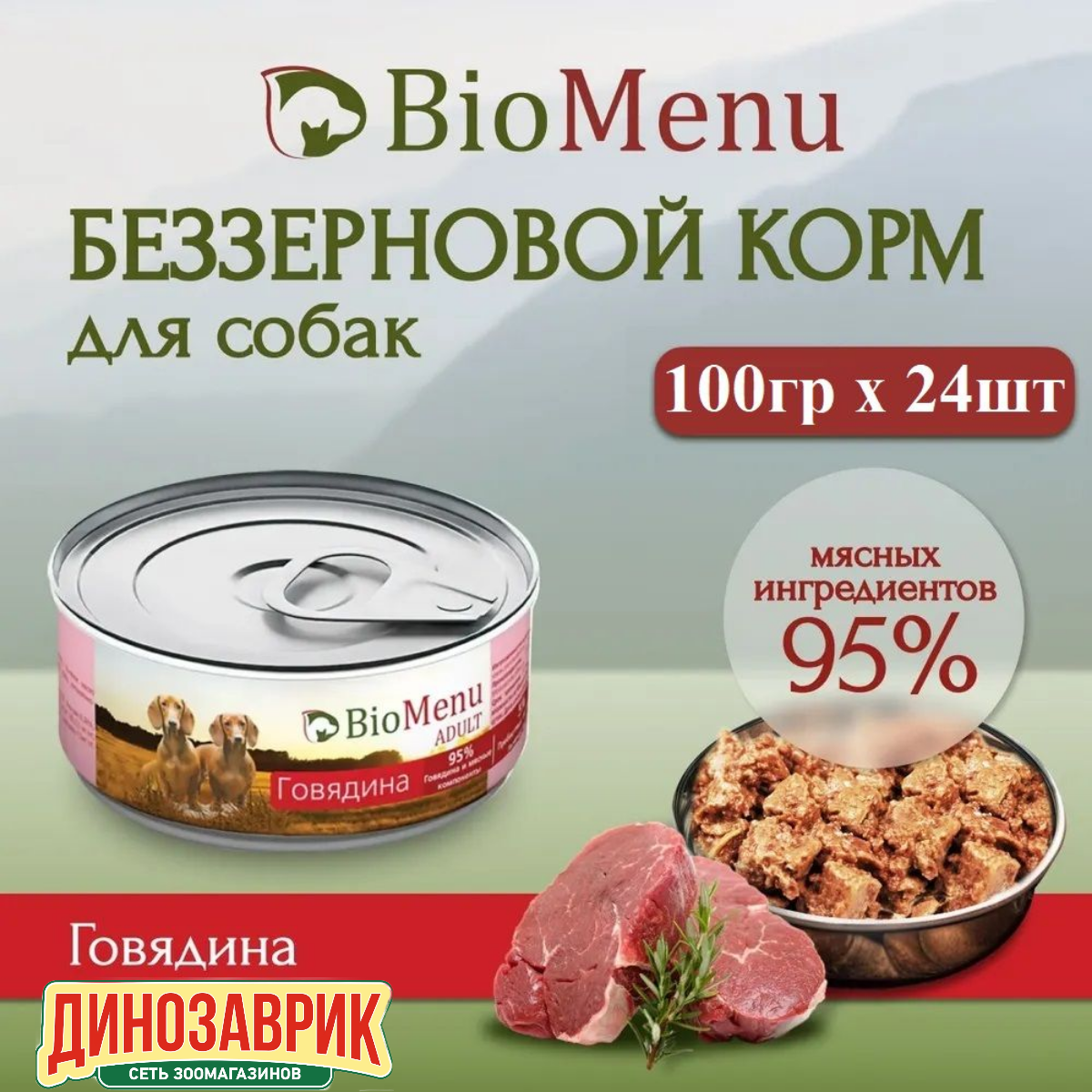 BioMenu Adult влажный корм для взрослых собак с говядиной, в консервах - 100 г х 24 шт