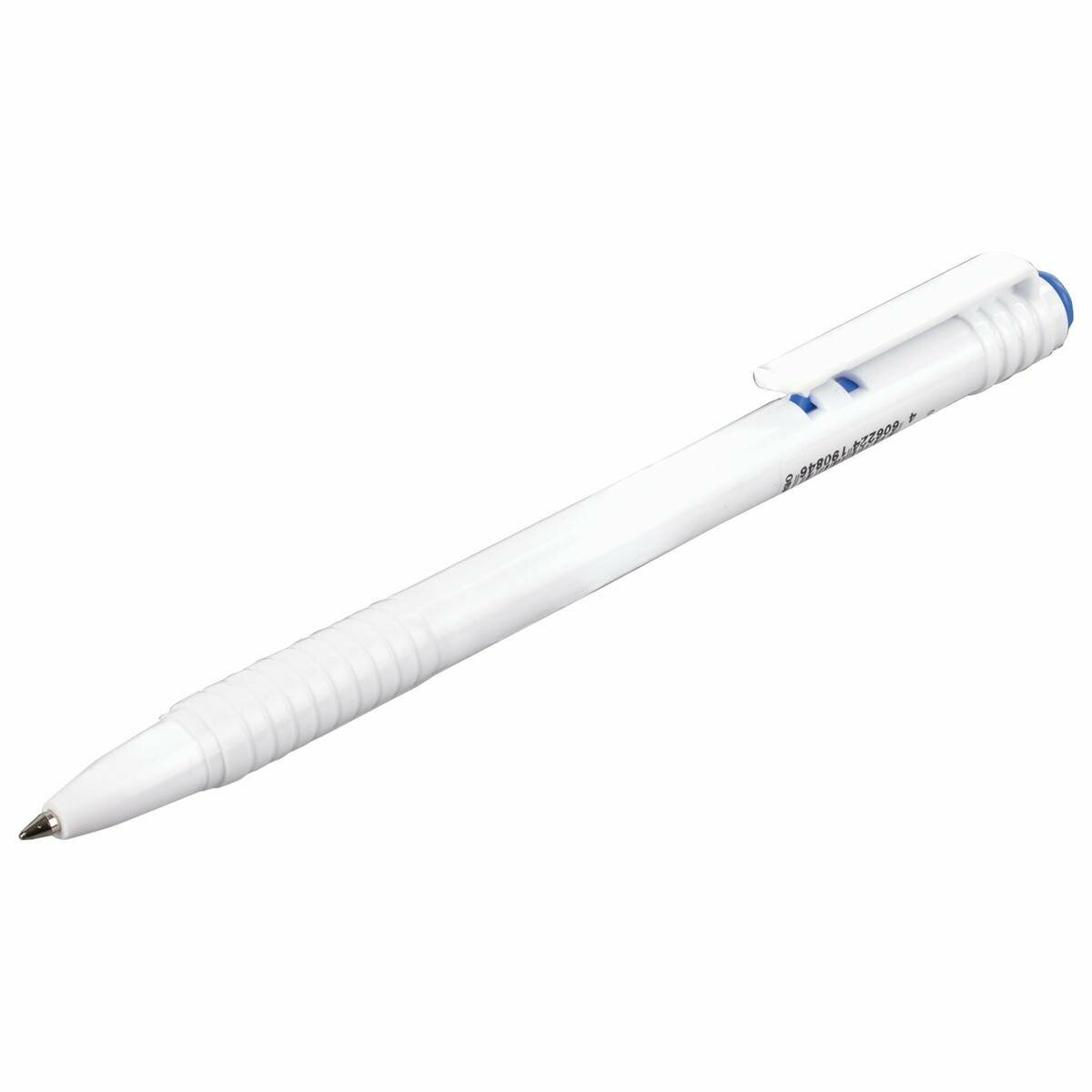 Ручка шариковая масляная автоматическая BRAUBERG "White", синяя, корпус белый, узел 1 мм, линия письма 0.5 мм, 142713