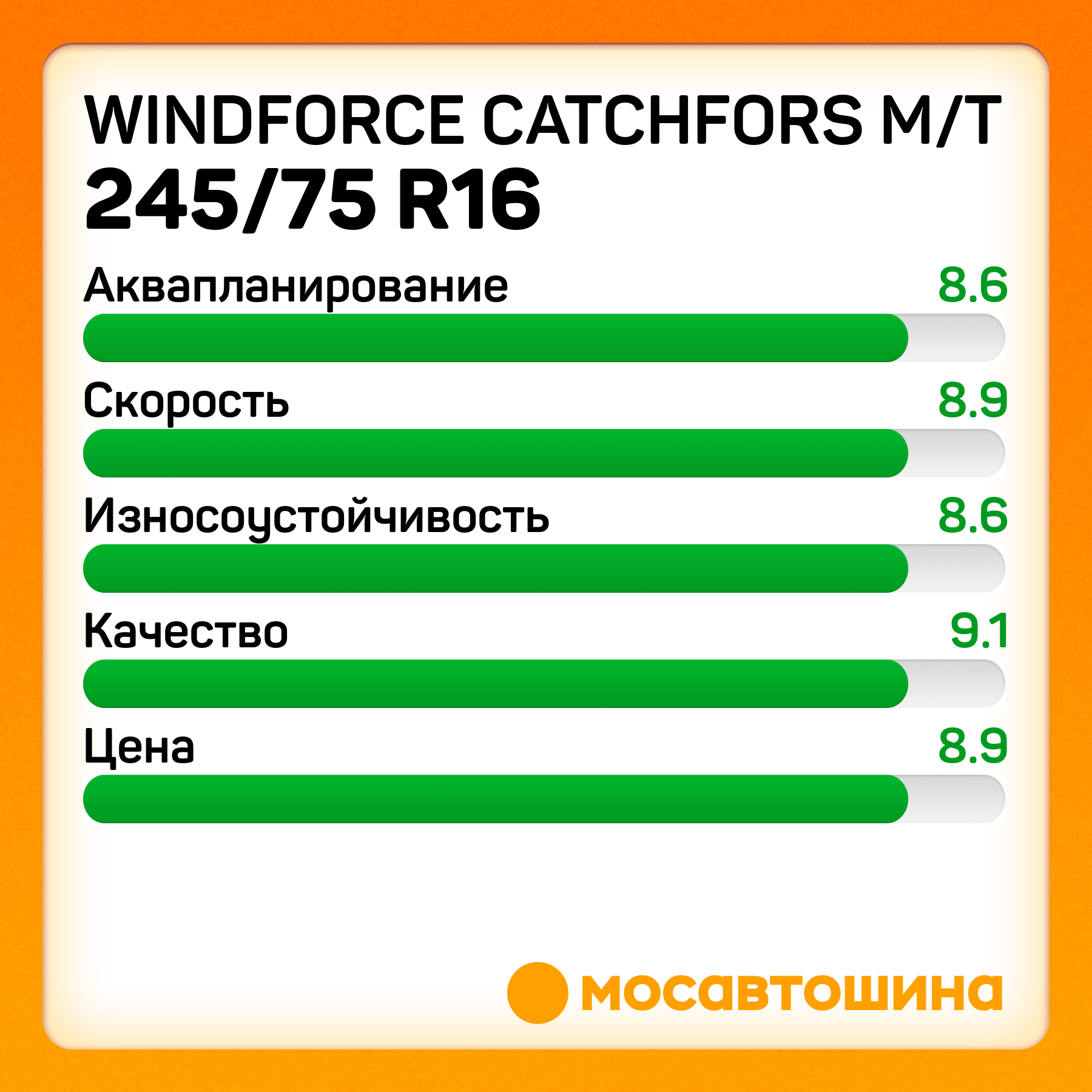 Ниже Вы можете прочитать отзывы на Windforce Catchfors M/T 245/75 R16 120/116Q, ознакомится с подробными характеристиками, посмотреть интересные обзоры и фотографии на Windforce Catchfors M/T 245/75 R16 120/116Q.