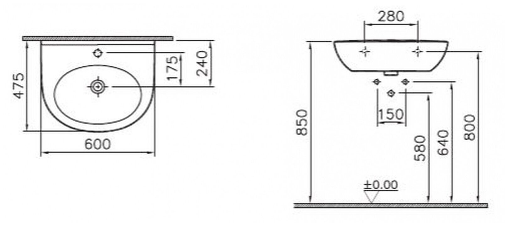 Подвесная раковина Vitra Zentrum 60х47,5х19,5см, арт. 5786B003-0001, санфарфор