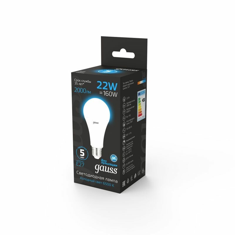Лампа светодиодная Black 22Вт A70 6500К холод. бел. E27 2000лм | код.102502322 | GAUSS (10шт.в упак.)