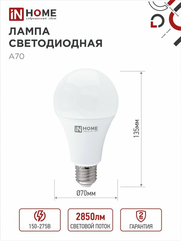 (7 шт.) Светодиодная лампочка IN HOME A70 25Вт 230В 3000К Е27