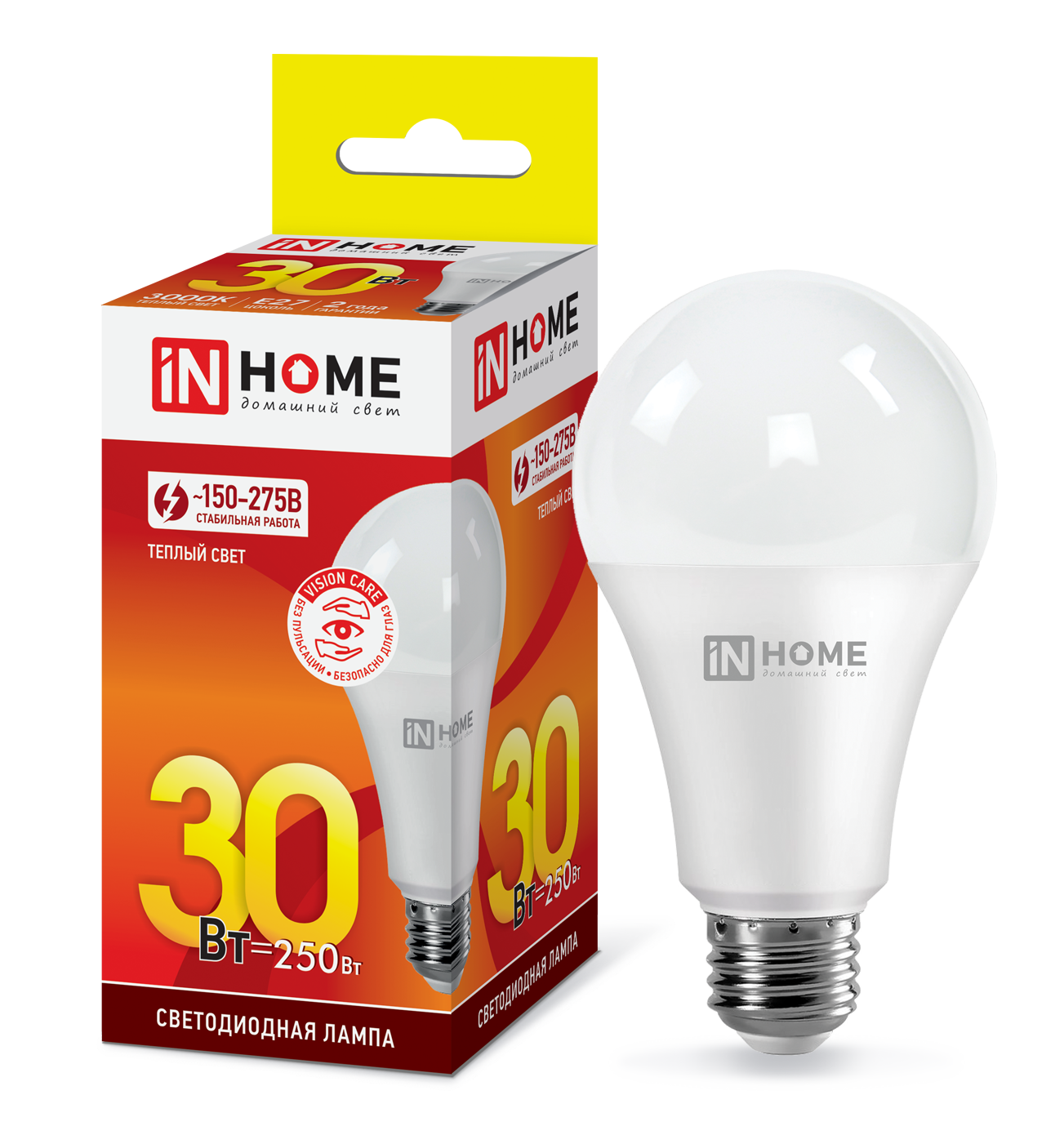 Лампа светодиодная IN HOME LED-A60-VC (4690612020303), E27, A60, 20 Вт, 4000 К