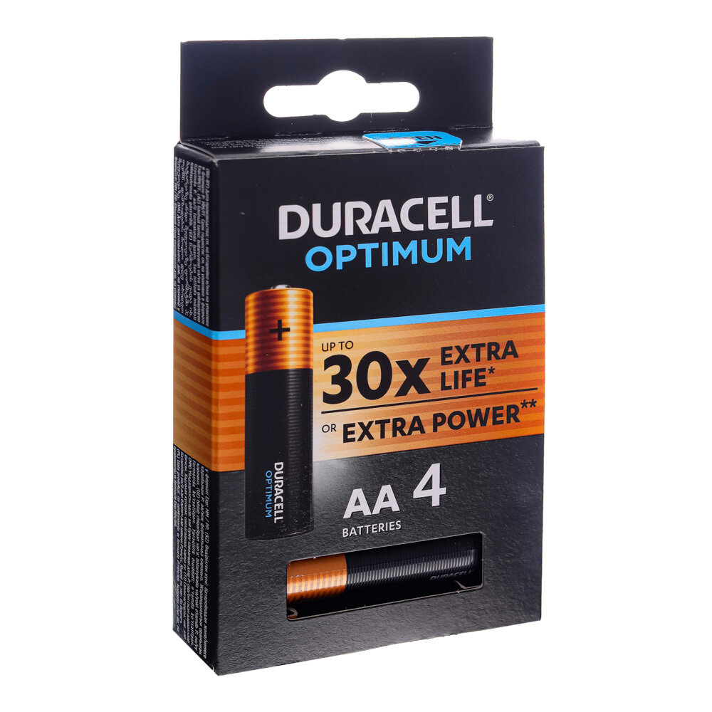 Алкалиновые батарейки DURACELL OPTIMUM OP1500 AA LR6 1.5В (4 шт. в упаковке)