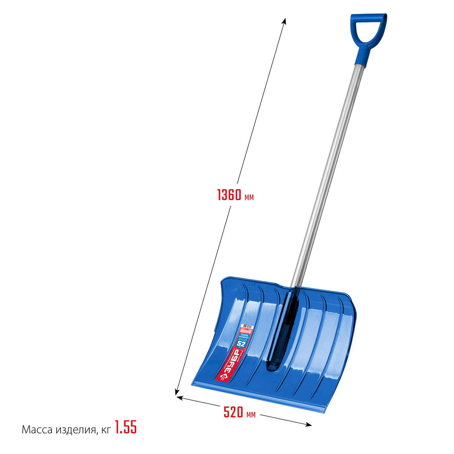 Ударопрочная снеговая лопата ЗУБР ангара из морозостойкого поликарбоната, легкий черенок из алюминия, V-ручка, ковш 52см