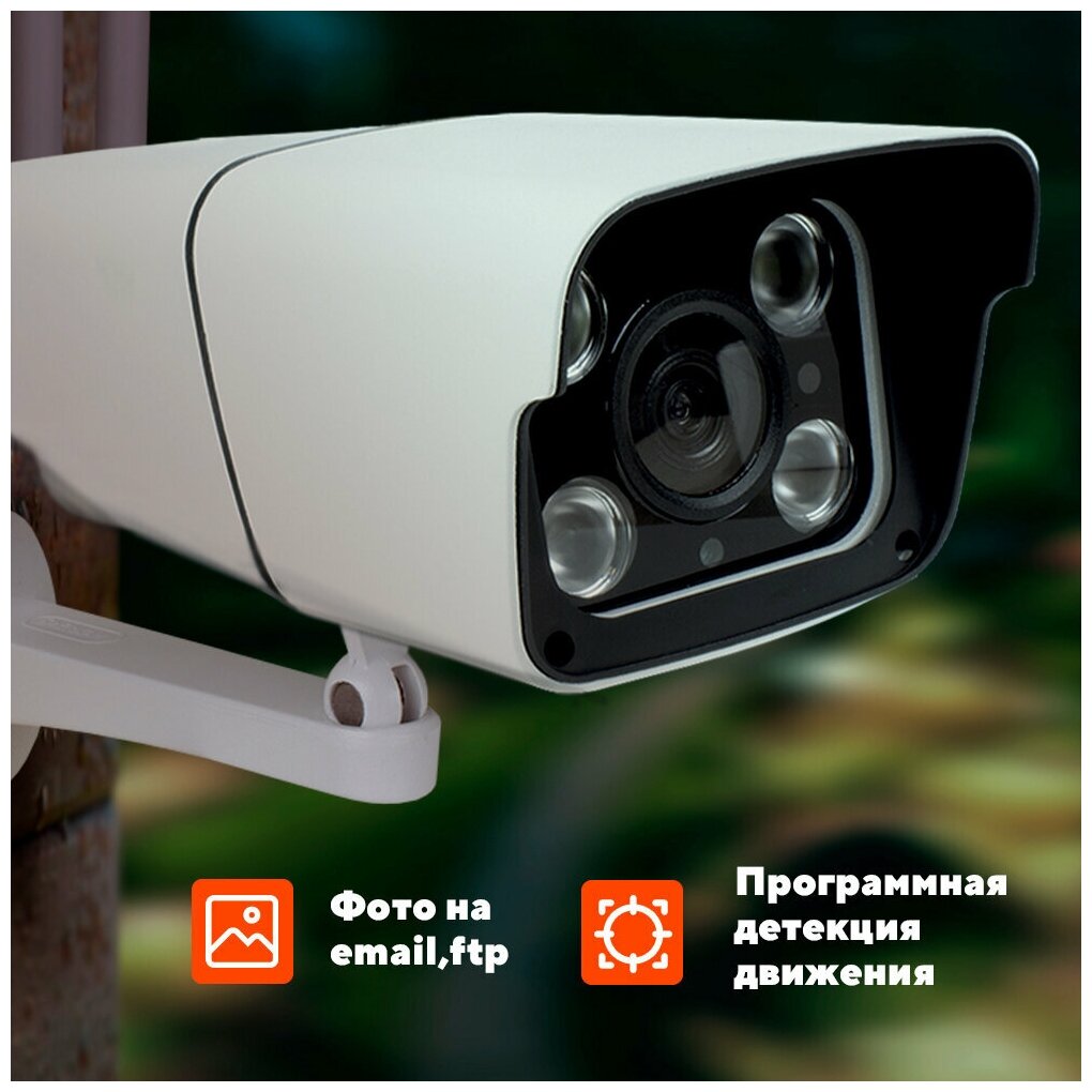 | Дополнительная информация | Высокочувствительный микрофон; Удаленный просмотр; Технология распознавания человека; Программная детекция движения; Возможно настроить отправку тревожного фото на e-mail при детекции движения в кадре, push уведомлений на смартфон, а также запись "тревожного" видео на карту памяти; Защита паролем; Металлический корпус; Встроенный громкоговоритель; LED подсветка |