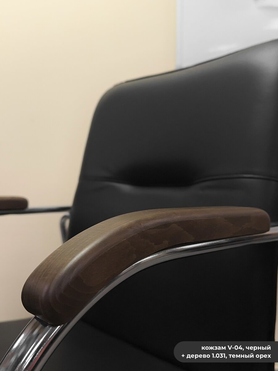 SAMBA (Самба) chrome V-04 / 1.031 Стул офисный для посетителей кожзам черный / дерево темный орех