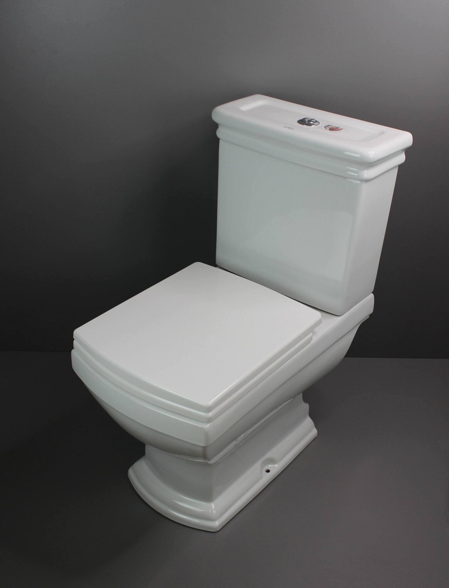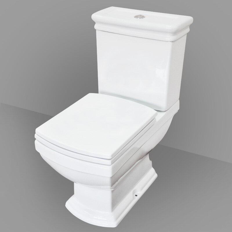 Унитаз-компакт Creo Ceramique Orleans OR1002 с крышкой-сиденьем с микролифтом, напольный, с горизонтальным выпуском, белый, OR1002+OR1003+OR1001