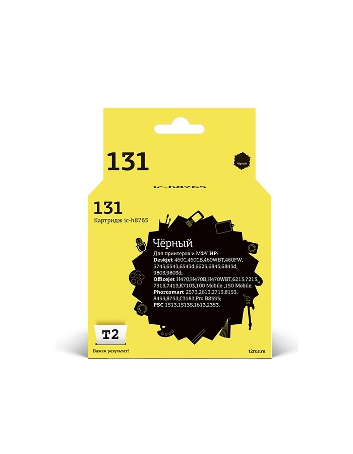 T2 Расходные материалы C8765HE Картридж IC-H8765 131 для HP Deskjet 460 5743 6543 6843 9803 PSC1513 6213 K7103, черный, 450 стр.