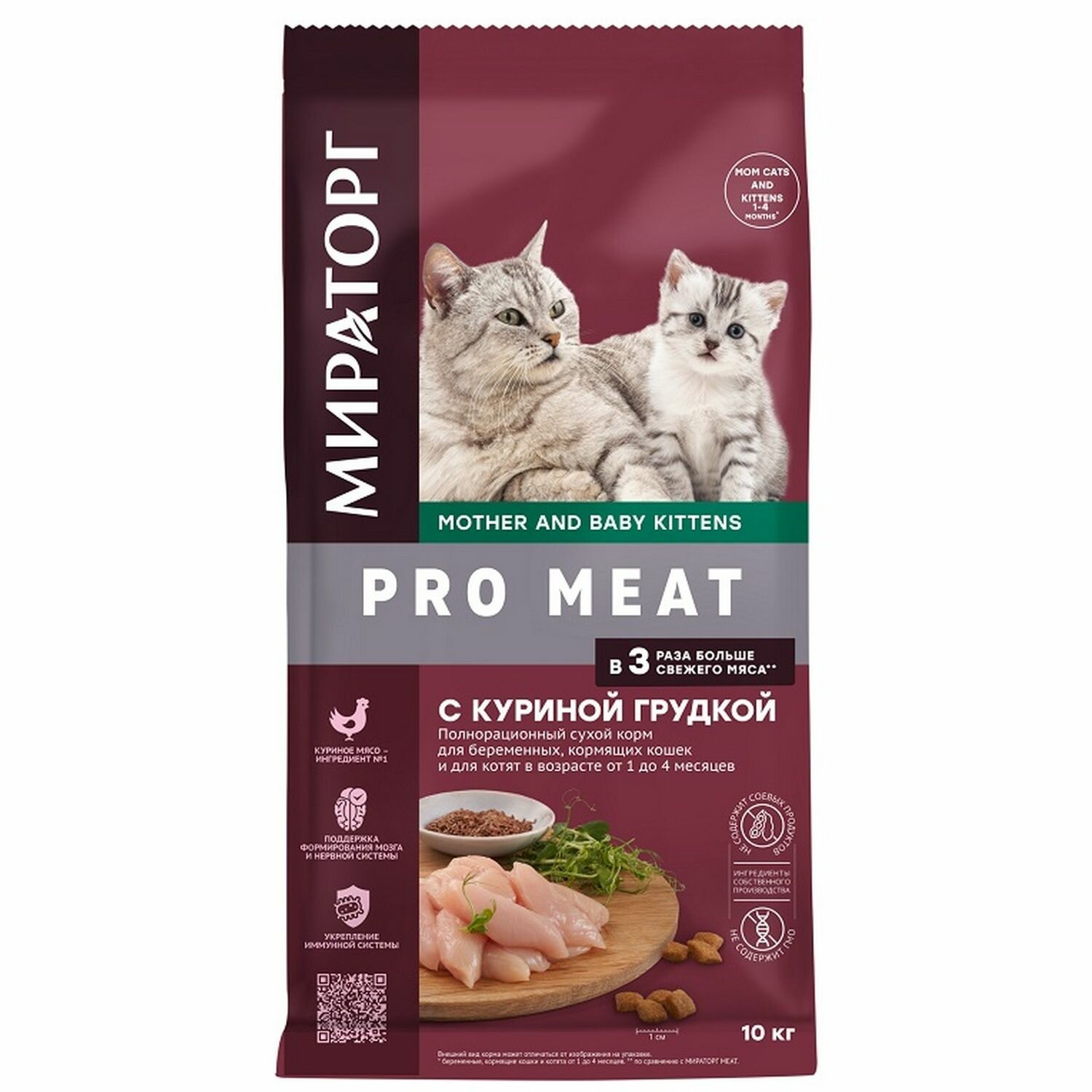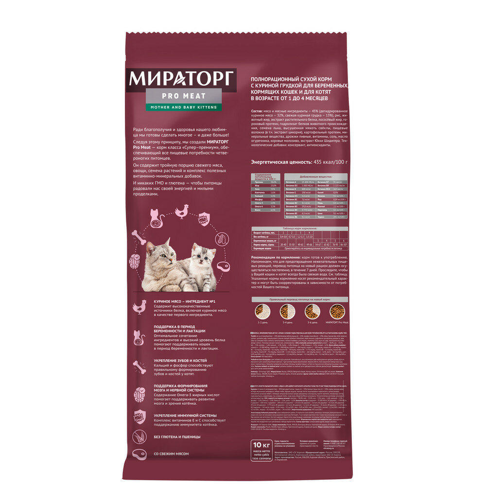 Корм сухой мираторг Pro Meat с куриной грудкой для беременных кормящих кошек и котят от 1-4 мес., 10 кг