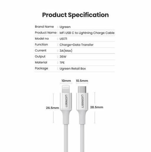 Кабель Ugreen US171 USB-C to Lightning Cable (1 метр) белый (10493)