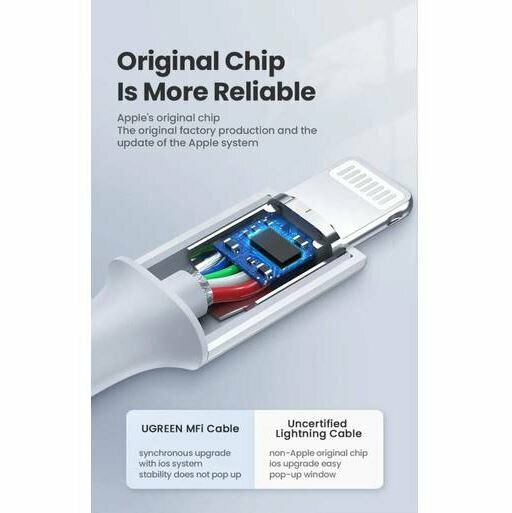 Кабель Ugreen USB C - Lightning, резиновое покрытие, цвет белый, 1 м (10493) .