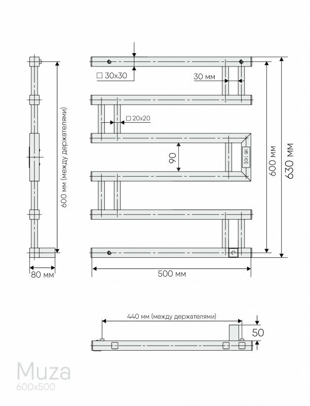Полотенцесушитель электрический INDIGO Muza 60/50 таймер, скрытый провод справа