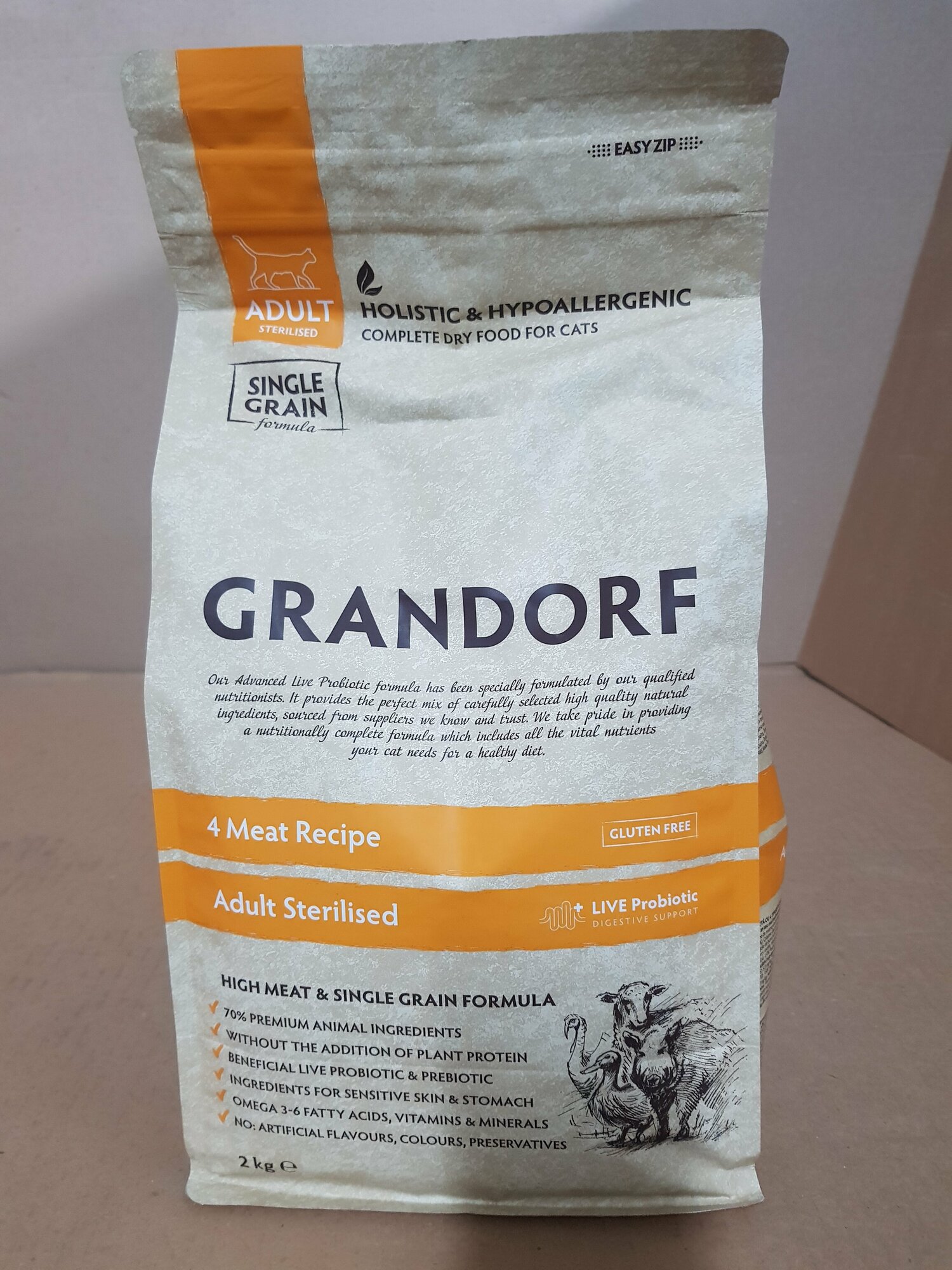 GRANDORF для стерилизованных кошек 4 вида мяса с пробиотиками 2кг