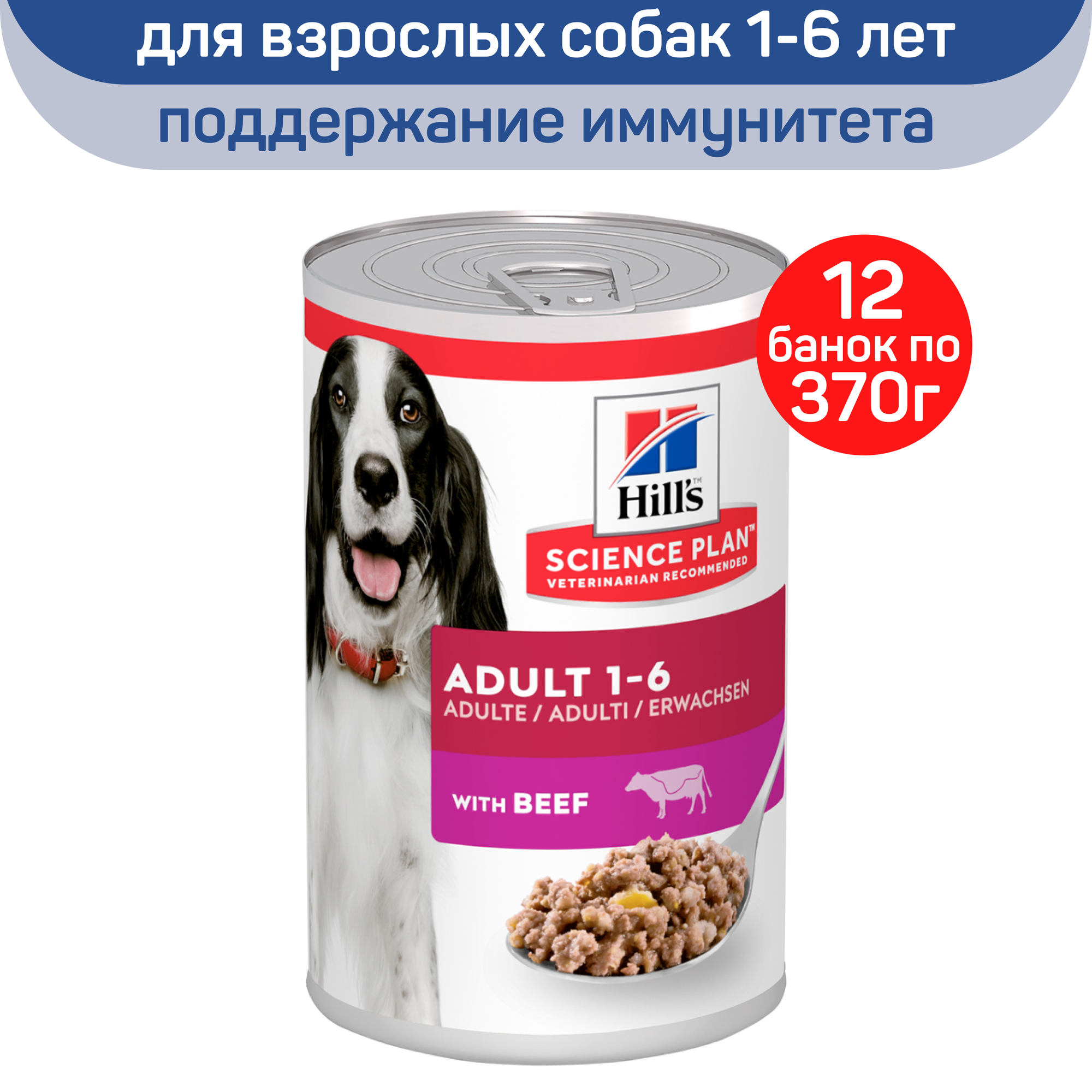 Консервы Hill's Science Plan для взрослых собак для поддержания мышечной массы и здорового иммунитета, с говядиной 370 г * 12 шт