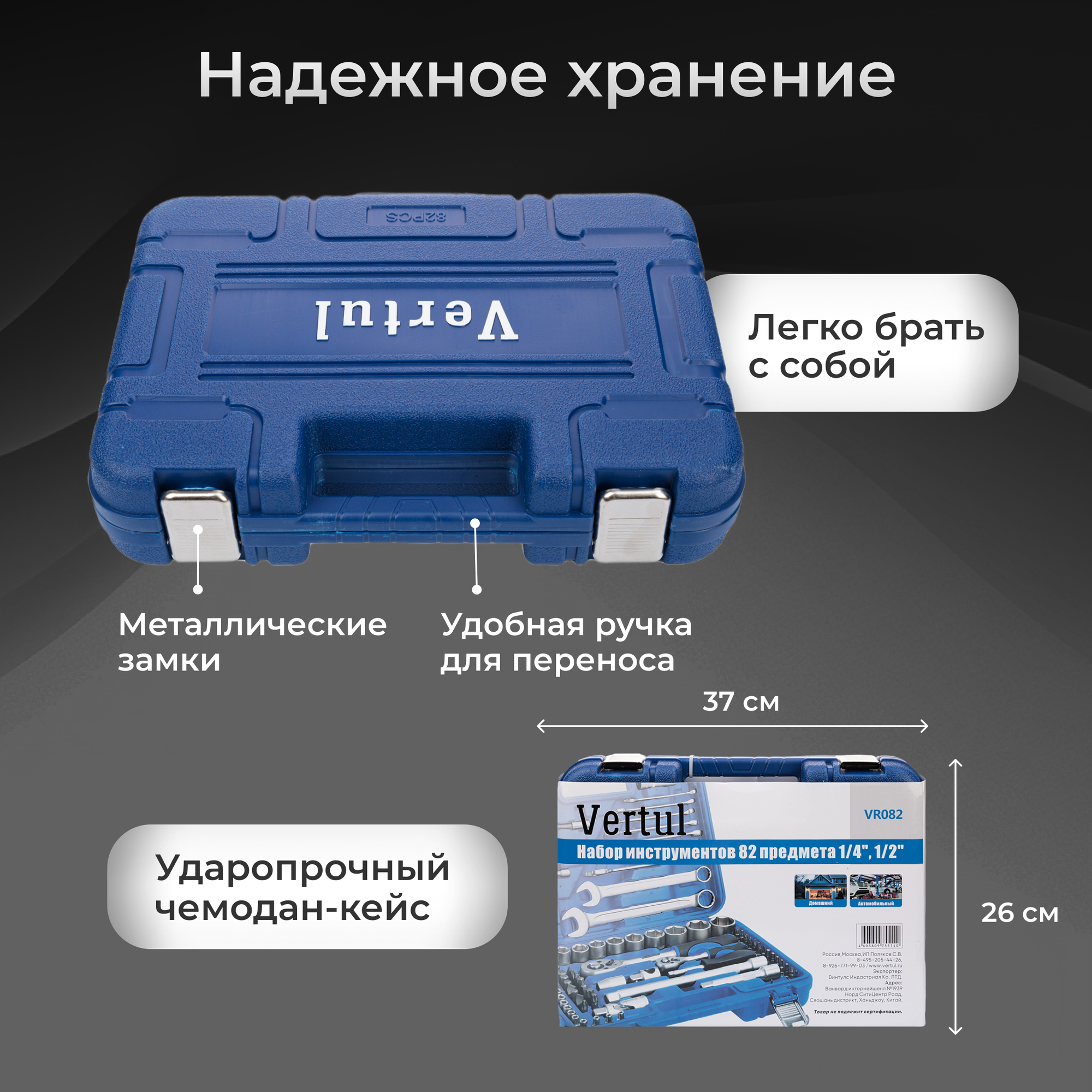 Набор инструментов Vertul 82 предмета 1/4", 1/2" VR082 интересное: