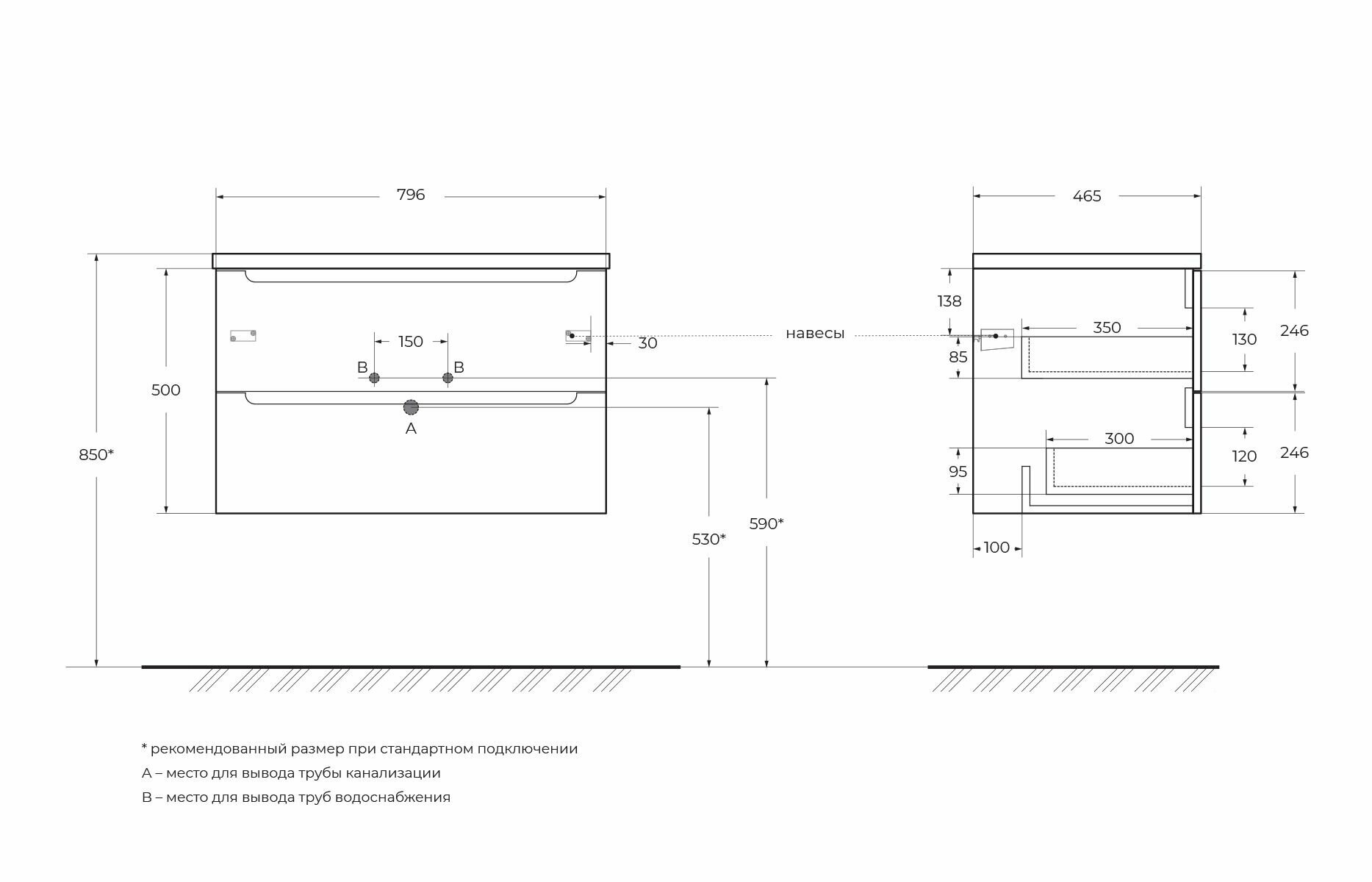 | Дополнительная информация | раковина, сифон для раковины, смеситель приобретаются отдельно |