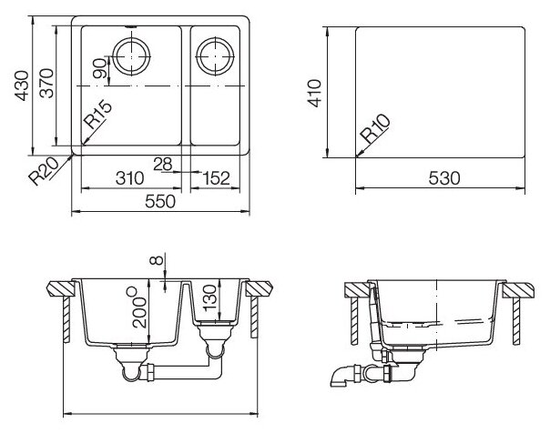 | Ширина мойки | 55 см |