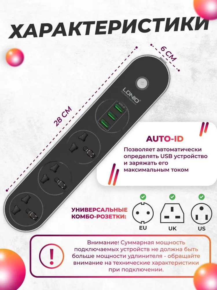 Сетевой фильтр с защитой от короткого замыкания LDNIO 3 розетки 1,6 метра интересное: