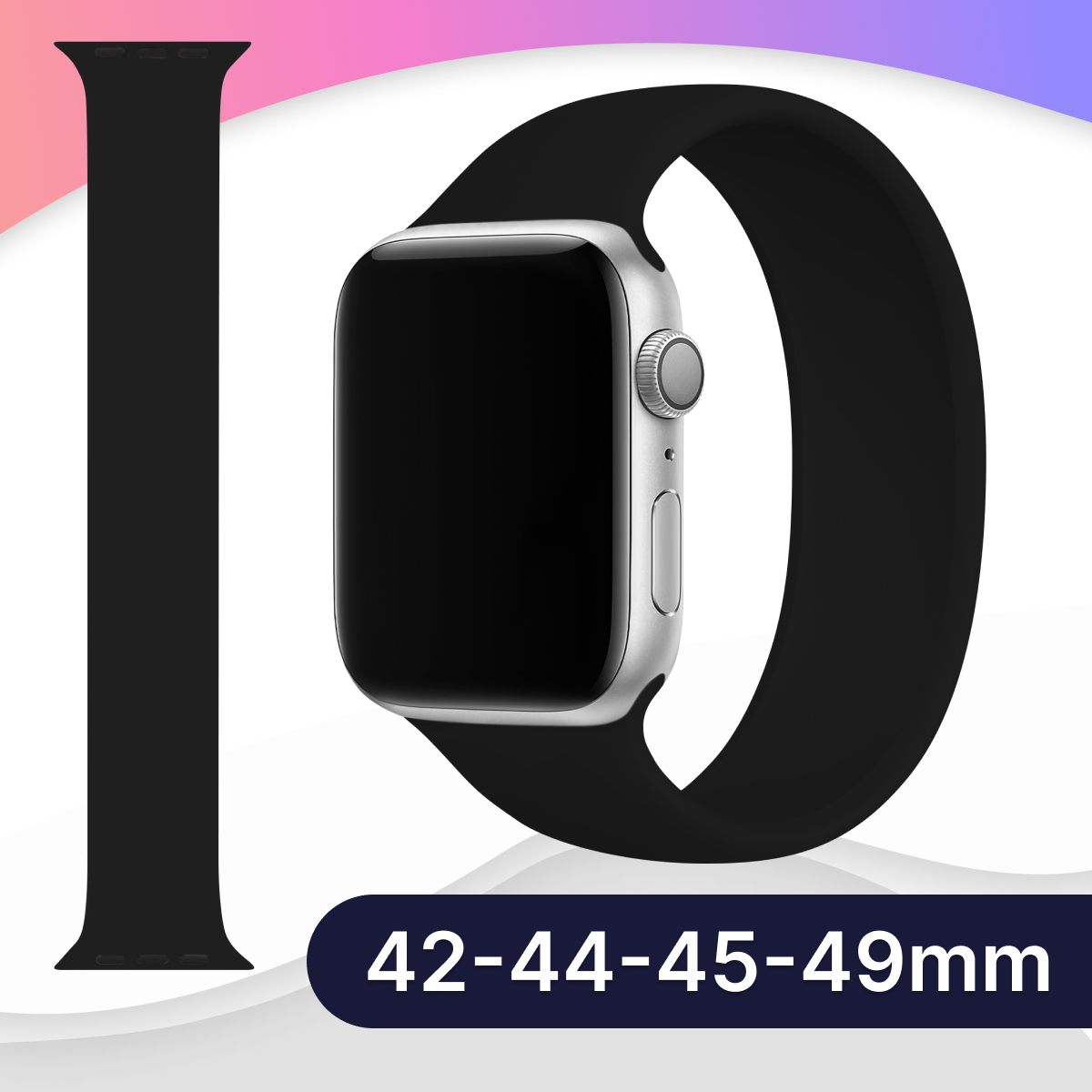 Силиконовый ремешок для Apple Watch 42-44-45-49 mm, Series 1-9, SE, Ultra / Монобраслет без застежки для смарт часов Эпл Вотч 42-49 мм, M (Black)