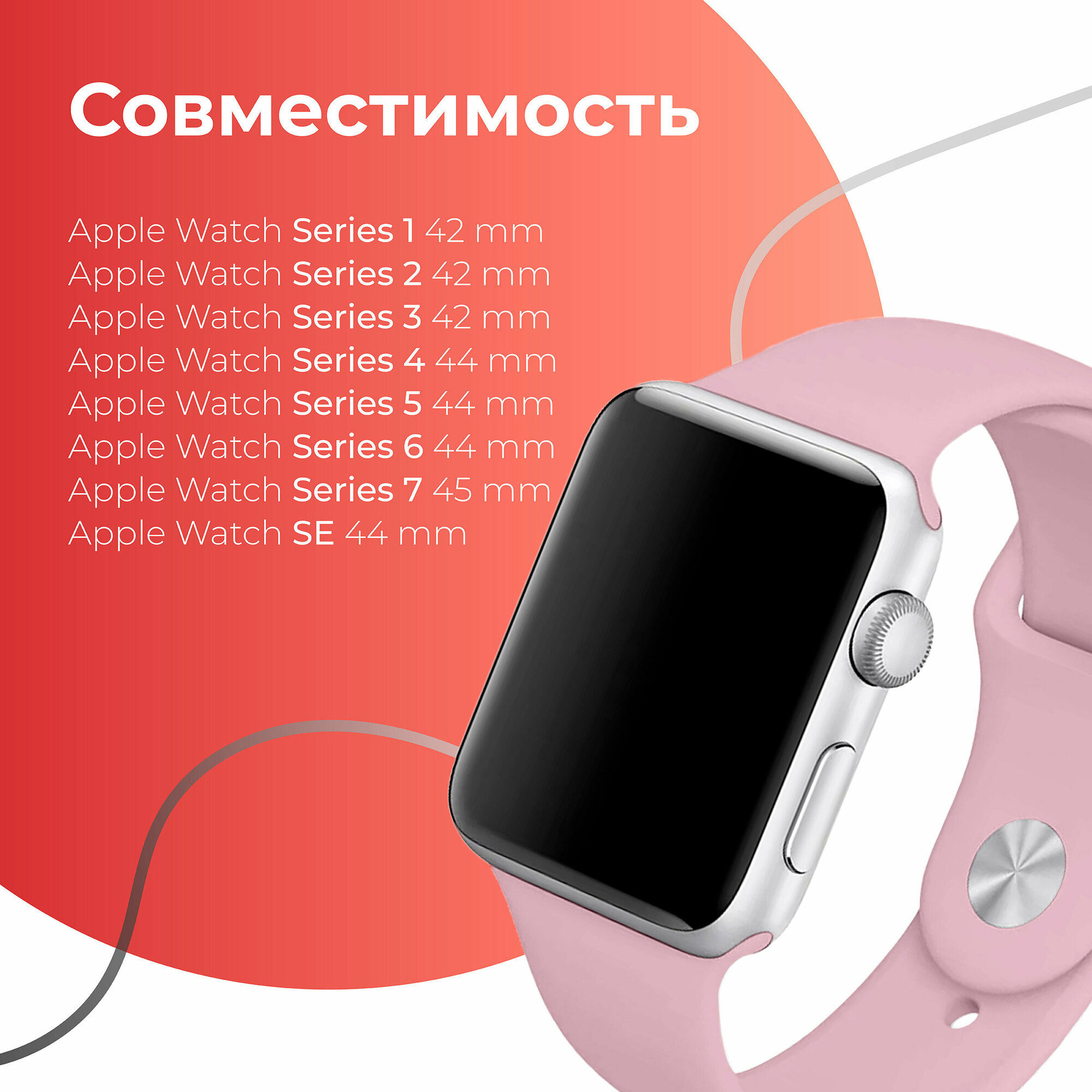 | Совместимость | Apple Watch 42 мм / Apple Watch 44 мм / Apple Watch 45 мм / Apple Watch SE / Apple Watch Series 1 / Apple Watch Series 2 / Apple Watch Series 3 / Apple Watch Series 5 / Apple Watch Series 6 / Apple Watch Series 7 |