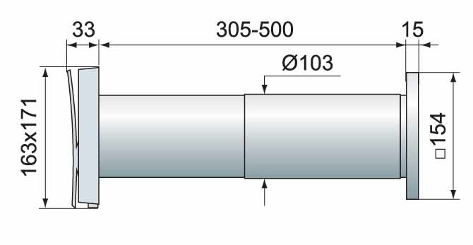 | Дополнительная информация | регулируемая длина воздухопровода; антимоскитная сетка; прямоугольная наружная решётка. |