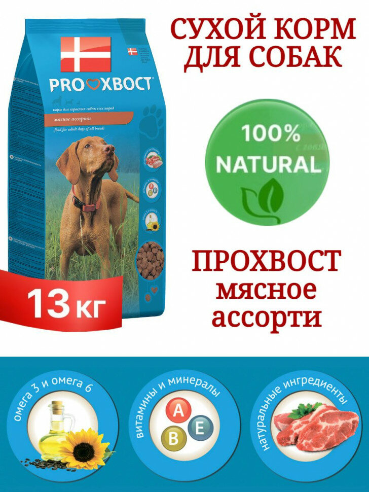 Сухой корм для собак ProХвост, со вкусом мясного ассорти, 13кг
