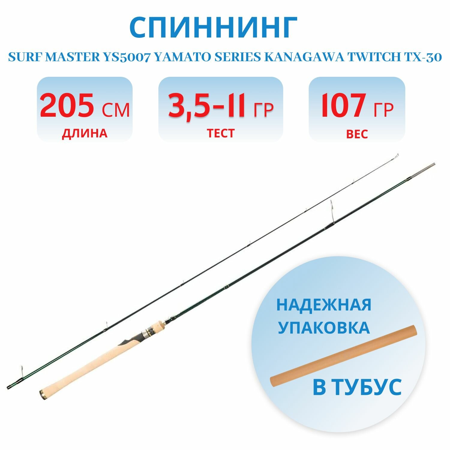 Спиннинг штекерный угольный 2 колена Surf Master YS5007 Yamato Series Kanagawa Twitch TX-30 (3,5-11) 2,05 м