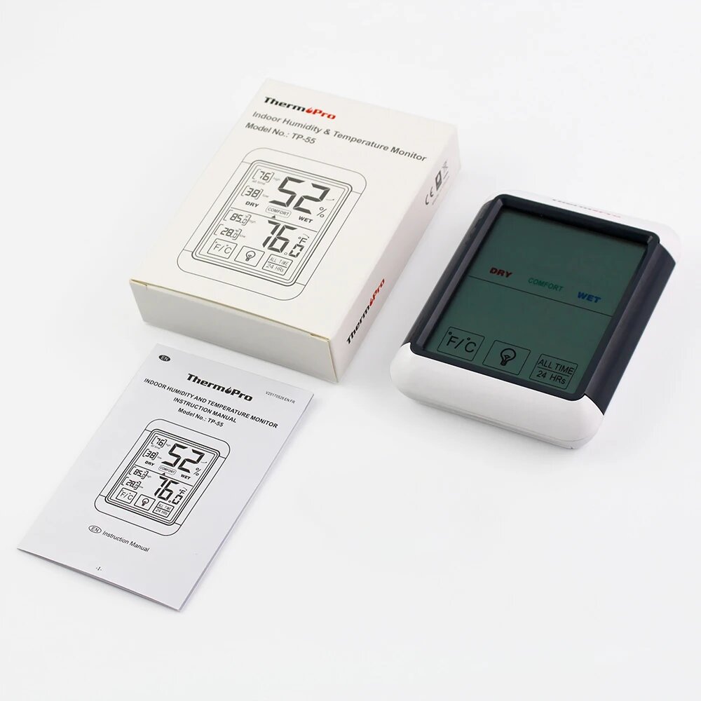 Цифровой комнатный термометр и гигрометр ThermoPro TP55 с большим сенсорным экраном и подсветкой для контроля температуры и влажности