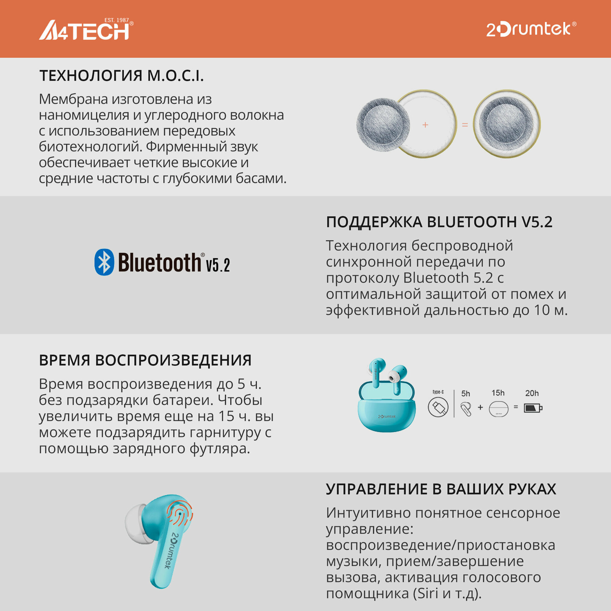 Гарнитура вкладыши A4TECH 2Drumtek B25 TWS, синий интересное: