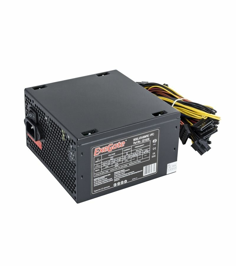 EX221639RUS, Блок питания 600W ExeGate 600NPXE (ATX, PPFC, 12cm fan, 24pin, 2x(4+4)pin, 2xPCI-E, 5xSATA, 3xIDE, black)