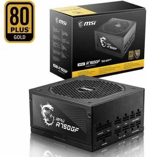 Блок питания MSI 750 Вт Сертификат 80 PLUS GOLD PFC Активный MPGA750GF