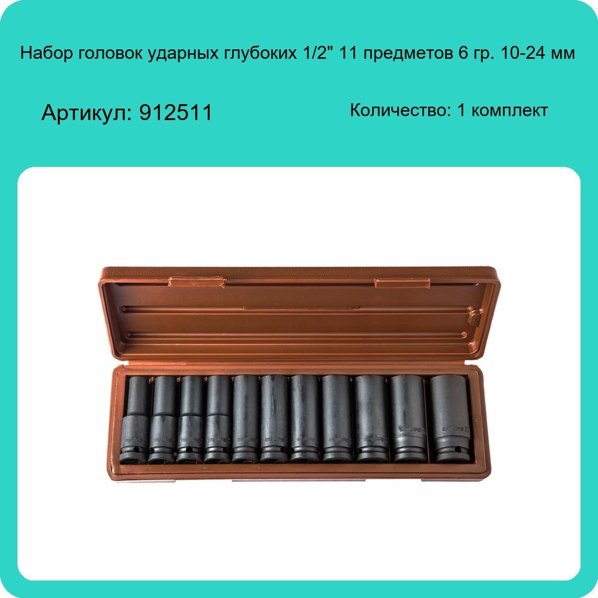 912511 Набор головок торцевых глубоких для ударного инструмента 1/2"DR, 10-24 мм, 11 предметов
